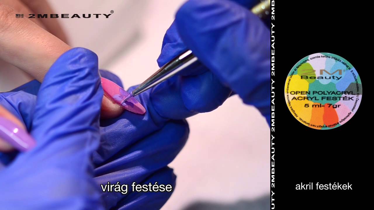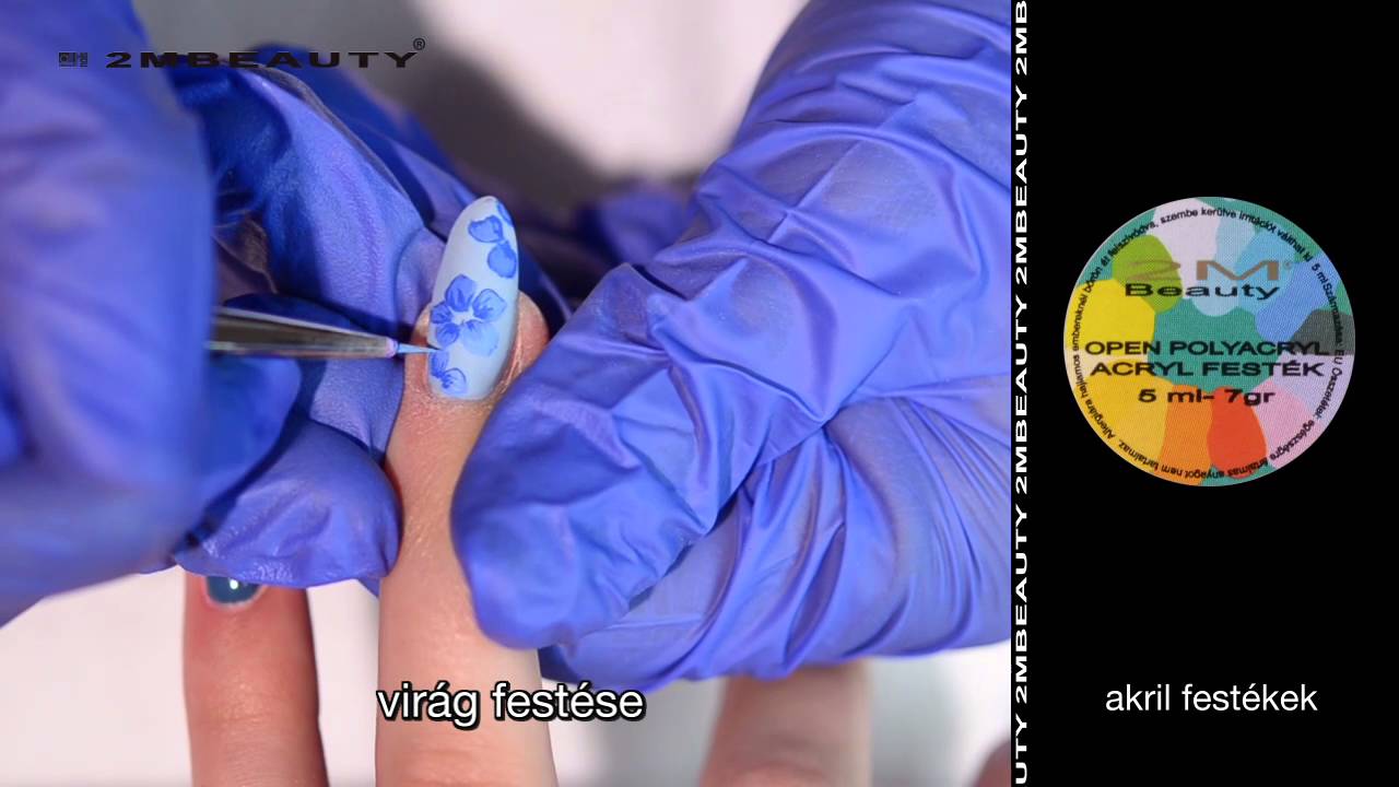 Tavaszi köröm akril virággal és transzferfóliával díszítve